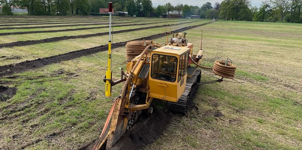 Verlegen von Flächendrainagen mit automatischer Höhensteuerung und GPS-Aufzeichnung